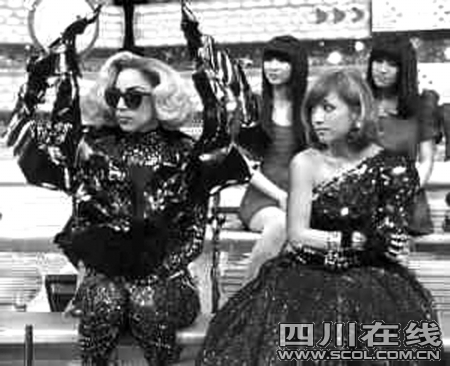 LadyGaGa在朝日電視臺的《MusicStation》中擔任表演嘉賓,她以一襲由日本設(shè)計師操刀的蝙蝠裝登場,氣勢逼人。恰逢步姐上節(jié)目宣傳新專輯《搖滾馬戲團》,GaGa被安排與步姐并排而坐,她不僅自爆睡覺時什么也不穿,又透露自己喜歡在各國尋找獨特的表演服裝:“這套衣服出自和GaGa姐相比,步姐成“小兒科”