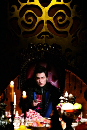 在昨日公布的預購海報上,周杰倫化身中世紀的吸血鬼,坐在餐桌前擺出若有所思狀,臉色蒼白。造型師為周杰倫在指甲上貼上有鉚釘的指甲片,眼睛里還戴了特殊的隱形眼鏡,塑造出“動物般的直立橢圓瞳孔”。周杰倫說自己在剛開始戴上這些“裝備”時,覺得渾身不舒服,不過隨著整體造型的完成,他覺得自己越來越有一個真正吸血鬼的感覺了。