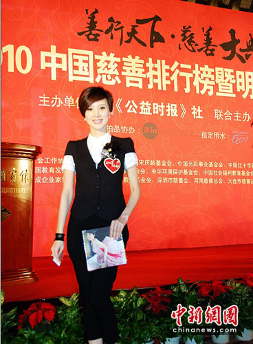 晚宴上,由中國社工協會具體實施的“共鑄中國心基金計劃”,明星們紛紛捐款,其中也包括“首善”稱號的企業家陳光標,而所有款項將用于救助陜西、四川和青海等地區的貧困家庭心腦血管疾病患兒。據組織方透露,之前女藝人金巧巧在新唱片發布會上也向青海玉樹災區捐款10萬元?梢娊鹎汕芍Υ壬剖聵I,也積極地向慈善家程光標看齊。