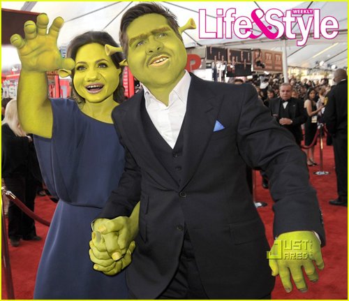 好萊塢電影大作《怪物史萊克4》將在今年5月21日上映,而一些雜志也抓住這個(gè)機(jī)會(huì),將娛樂(lè)名人和史萊克聯(lián)系在一起吸引眼球,《Life & Style!》雜志就將布拉德·皮特夫婦、凱特·戈瑟琳以及蘇珊大媽惡搞成了《史萊克》中的形象。