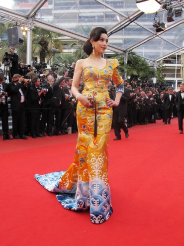 卜柯文先生介紹說:“這套禮服并不是特意為戛納準(zhǔn)備的,這其實(shí)是源自冰冰偶然的一個(gè)設(shè)計(jì)靈感,她早前跟我講了她的想法,而我也覺得范冰冰身上有著中國女明星少見的一種大氣的女王范兒,所以經(jīng)過討論決定改良清朝的龍袍在霸氣中展現(xiàn)東方美,于是就做了這么一套衣服,想找一個(gè)合適的場合展示。我們找到設(shè)計(jì)師勞倫斯·許先生請他幫我們把這個(gè)創(chuàng)意實(shí)現(xiàn),他安排了三十個(gè)工人在十五天內(nèi)連續(xù)的純手工制作,非常辛苦。所以冰冰也很感謝勞倫斯,也是因?yàn)橛兴膸椭庞辛舜蠹铱吹降倪@件禮服。(生活新報(bào))