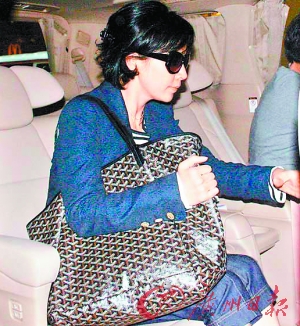 日前,香港記者在中環碰見劉嘉玲偕母親在太子大廈內的名店買童裝,知道被傳媒發現后,馬上安排乘保姆車走人。只見身穿橫條紋T恤及腳踏平底鞋的劉嘉玲肚子凸出,她一反常態棄穿高跟鞋,戴上太陽眼鏡也略見倦容,在車上坐下時更刻意用價值1萬多元的法國名牌手袋Goyard遮掩微隆腹部,孕味甚濃。(星 星)