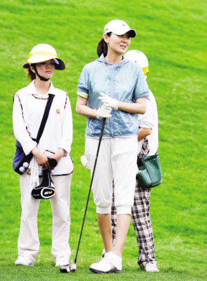 而潘蔚上場打球的時候,每一個招式都很專業,一旁的球童告訴記者:“潘蔚是所有來的女明星中打得最好的,有時候比孫楠還打得好。”當記者將鏡頭對準潘蔚時,身旁的孫楠立刻將手遮住潘蔚的臉,不愿意妻子曝光在媒體面前。