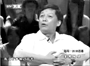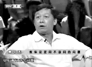 節目最后,易中天被要求在現場唱歌,自嘲是“峨眉山的猴子”,承擔“被觀賞”的義務,此時,主持人又問“您會喜歡別人把您稱作峨眉山猴子嗎?”易中天一副無語的表情說:“你去問問那個峨眉山的猴子,它喜不喜歡?怎么還沒有明白我的意思?!著急!”