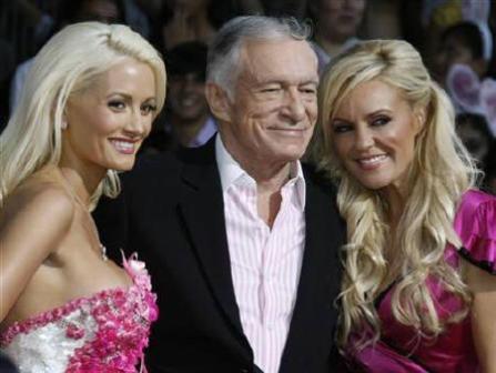 圖為休.海夫納2008年8月20日與兔女郎在一起。