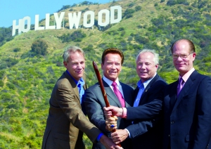 美國時間4月26日,加州州長施瓦辛格專門在招牌所在的山腳下演講,他說:“好萊塢招牌是夢想、機遇和希望的符號,它矗立在那里歡迎著一代又一代的夢想者、藝術家,還有奧地利的健美運動員來到這里。”他還在講話中感謝了捐助者們,他們包括美國電影藝術與科學學院、CBS電視臺、NBC環球公司、索尼影業、20世紀福克斯公司、華納兄弟公司、時代華納公司、斯皮爾伯格、湯姆·漢克斯夫婦等等。