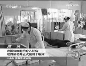 5月2日,央視新聞聯播國內簡訊中播報《我國體細胞治療乙肝病取得成功并正式應用于臨床》的新聞,其中稱,“我國體細胞治療乙肝病取得成功并正式應用于臨床,一項采用體細胞治療乙肝的新技術近日在解放軍第261醫院研究成功并正式應用于臨床。該技術通過少量提取患者細胞后經過體外培養,再輸回到患者體內激活免疫殺傷細胞,以達到殺滅血液及肝細胞內的病毒”。