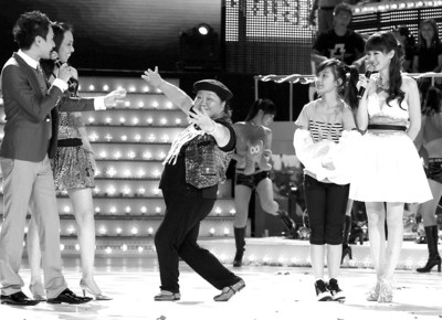 身材矮胖、表情豐富、舞姿夸張,60歲的馬秀林在日前東方衛視直播的《歡聚世博·全家都來賽》節目中甫一亮相,即引發驚呼——“芙蓉奶奶來了!”但最終奪冠呼聲頗高的“芙蓉奶奶”仍慘遭淘汰,對此,“芙蓉奶奶”當場發飆:“評委何占豪完全不懂我的表演,評委標準有問題! ”