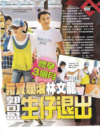 據報道,郭可盈已經有三個月身孕,她的朋友透露:“文龍一直都希望有小朋友,但可盈事業心太重,整天想著工作,不想生孩子。不過發生桃色勒索案之后,他們經常溝通,患難見真情,可盈終于答應生孩子,她希望有了孩子之后,文龍會有責任感,不要再像以前那樣出去玩。”