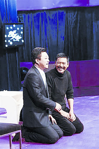 發哥上臺的第一句話就和朱軍談起了他在書中看到的朱軍父親的故事,孝順是溝通兩個中年男人最好的寒暄語,于是節目一如既往的順利,觀眾的掌聲和笑聲此起彼伏。發哥場上也不拿自己當外人,“擅自指揮”“關燈”,實施自己的節目計劃,當發哥跪在舞臺上,并傾情的講述緣由的時候,朱軍以同樣誠意的姿勢“還禮”。發哥執意要給朱軍行一個叩拜大禮,叩拜的原因是朱軍對仙逝父親的孝順,叩拜的是一種禮儀,更是一種精神,源于拍攝孔子數月的體會。這是我在《藝術人生》開播的9年中,見到的嘉賓中絕無僅有的表達方式,我們也被深深打動,這個對于中國人來講,最重要的禮儀姿勢,是絕對不能拿來娛樂的。我們也佩服發哥的膽量,我們尊重發哥,是因為他尊重節目,尊重了我們心中共同的誠意和精神。