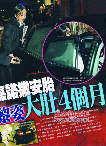 為生仔改名“黎珈而”的黎姿自成功“加兒”后,一直安心養(yǎng)胎甚少露面。昨日新上市的《壹周刊》又爆新料,雖然大部分時間都留家安胎,不過一向幫忙打理弟弟黎嬰美容診所生意的黎姿上月底也現(xiàn)身視察公司事務,全程都由司機接載。一身黑色長外套裹住的黎姿,在上車一刻因外套揚起露出白色打底衫,四個月的“大肚照”終掩不住,曝光了!而一向?qū)枳颂蹛塾屑拥鸟R廷強,聽說自老婆懷孕后也變成緊張大師,減少出外應酬抽更多時間陪黎姿在家安胎。