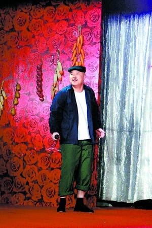 晚上10時許,在一共6個節目持續了近3個小時的現代二人轉表演后,趙明遠上臺了。這位29歲的演員要模仿41歲的王小利扮演的劉能。