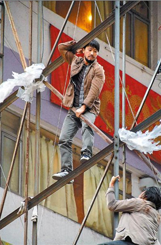 臺(tái)灣媒體消息,黎明前天在銅鑼灣鬧市區(qū)拍攝一場(chǎng)驚險(xiǎn)追逐的戲,現(xiàn)場(chǎng)只見黎明在5層樓高的鷹架上爬來(lái)爬去,看得叫人為他捏把冷汗。