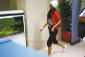 晚9:15,“來了!來了!”安檢人員對(duì)講機(jī)里傳來前方隨時(shí)更新的信息,只見章子怡在一位胡須男助手的引導(dǎo)下,面露微笑、輕松自如地走過安檢門,白色線帽和黑超墨鏡很是打眼。此時(shí),本報(bào)攝影記者卻被劇組工作人員強(qiáng)行按住相機(jī)。旁邊的地面服務(wù)人員看到真人版“國際章”不禁感嘆道:“好瘦哦!皮膚還白耶!”一男生說:“恁個(gè)熱,還戴恁個(gè)厚的帽子。”