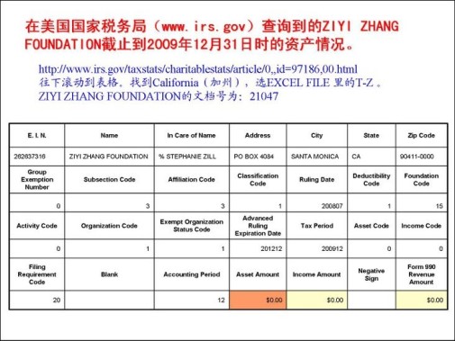 網友疑惑:上美國IRS政夫網站發現子怡基金是在2009年5月份失效。您是在2010年2月9日重新激活的,有視頻截圖。