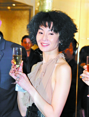 中新網5月17日電 據臺灣《中國時報》消息,張曼玉14日晚出席上海精品店剪彩活動,年近50歲,卻穿一襲深V露背洋裝,加上黑色粗腰帶襯托腰身,身材好似年輕辣妹一般,與年紀完全成反比。
