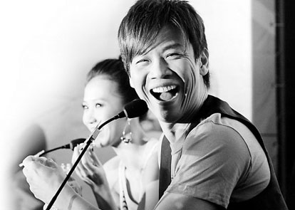4點半光景,身披小馬甲的陶喆和弦子先后出場,并作“活力無限”狀,但老記們明顯仍在“留戀”朱丹,大多意興闌珊。無奈,弦子只好主動出擊,力曝拍廣告的時候自己不敢緊靠偶像陶喆,陶喆倒也懂得投桃報李:“其實是她太高了,攝影師讓我們背靠背的時候,她總是很有‘風度’地蹲得比我更低,好讓我看上去更偉岸些。”