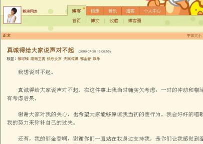 一直在“快女”中使用23歲年齡的郁可唯早前被網友爆料隱瞞已經26歲的真實年齡,并被指出23歲的年齡與多項賽前經歷產生沖突。此外,一名知情人還爆料,郁可唯確實出生于1983年,而今年參加“快女”是采用假身份證報名,目前已被識破,不過該消息并未得到天娛以及湖南衛視方面的肯定。7月30日下午,郁可唯在個人博客中公開道歉,承認確實在“快女”比賽中改動過年齡:“真誠的給大家說聲對不起。在這件事上我當時確實欠考慮,一時的沖動和糊涂,沒有考慮后果!蹦壳耙阎稿e的郁可唯還表示希望當初的傻行為能夠被原諒,而她本人也會更努力的唱歌盡力彌補過失。
