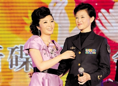 當天的活動現場,滿眼望去一片軍綠色。出席視聽會的不僅有李丹陽的歌壇前輩、圈中好友,更有百余名第二炮兵政治文工團的戰友為其捧場助威。在眾多好友中,宋祖英的出場贏了滿場最熱烈的叫好聲。