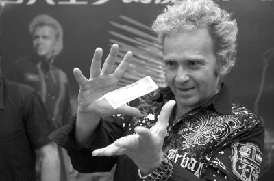 昨天下午,與哈拉利相比顯得少言寡語的蓋洛斯,卻用實際行動成了攝影、攝像機的焦點,掉包記者緊攥在手里的硬幣,讓皮夾子憑空著火,燒毀的錢幣卻赫然出現在未曾開封的小包裝白糖中——蓋洛斯的每一個“節目”都頗有上春晚與劉謙一較高下的潛質。事實上,蓋洛斯也是美國電視屏幕上家喻戶曉的明星,他的“今夜秀”連續創下收視佳績,早在劉謙之前,就成為真正意義上的 “魔術明星”。蓋洛斯的 “粉絲”還包括簡·方達、阿諾德·施瓦辛格、達斯汀·霍夫曼、艾迪·墨菲、羅賓·威廉姆斯、尼古拉斯·凱奇、湯姆·漢克斯等,星光璀璨,不勝枚舉。