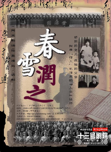 廣州上演《春雪潤之》 講述孤獨的父親毛澤東
