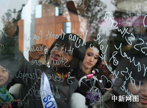 中新網成都11月19日電 (李鵬程) 19日下午,隨著三輛滿載各國選美小姐的大巴駛入川投國際酒店的大門,參加第49屆國際小姐世界大會總決賽的全部參賽選手已抵達成都。雖然天氣仍舊寒冷,但是佳麗們的精神面貌都極佳,對于第一次來到成都,她們顯得很興奮。主辦方隨后進行簡短而隆重的歡迎儀式,由迎賓志愿者向各國小姐贈送了代表成都本地特色的熊貓玩偶。
