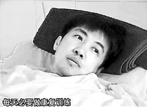 記者走進病房時,鄢頗躺在病床上,李小冉就坐在一邊。鄢頗看上去雖然很虛弱,但是精神還不錯,還不時和李小冉有說有笑。他給記者看了右臂和右腿打的石膏:“打著石膏的三處都是有骨折的!薄昂笃谛枰畈欢喟肽甑揭荒甑拿刻毂匾目祻陀柧!闭f起鄢頗的傷情,李小冉忍不住再次落淚:“愛一個人就是,你會覺得雖然很累,但是你心里是很開心的,然后看著他一天天好起來,你會覺得特別踏實!