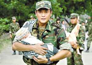 娶了個重慶老婆的香港明星魏駿杰在《震撼世界的七日》中扮演一個參與救災的解放軍上校。