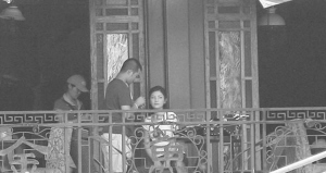 胡可在樓上化妝。