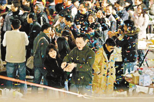 當(dāng)電視熒幕開(kāi)始倒數(shù),陶大宇和阿寶就走在一起高聲大叫“10、9、8……”,現(xiàn)場(chǎng)此起彼落的鞭炮聲和灑落的彩色紙屑,讓他倆也變得情緒高漲。阿寶把預(yù)先準(zhǔn)備好的香檳取出來(lái),但不知何故弄了好些時(shí)間仍無(wú)法打開(kāi)。一開(kāi)始陶大宇一直在身邊寵溺地看著,最后還是拿過(guò)來(lái)幫忙,阿寶便挪動(dòng)身體靠近,與前夫兩人四手緊握著瓶身,只見(jiàn)一個(gè)怕得瞇起雙眼,一個(gè)面容緊張地終于打開(kāi),兩人都好像孩子般歡呼尖叫,非常興奮。