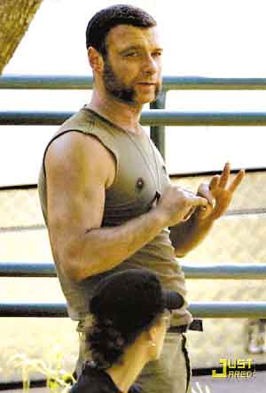 日前,正在澳大利亞悉尼熱拍的《X戰警前傳:金剛狼》(X-Men Origins: Wolverine)公布了大量影迷的探班照,照片的主角自然是39歲的“金剛狼”休·杰克曼,另外一位則是與他演對手戲的里夫·施雷伯。片場中的休·杰克曼神情十分輕松,不僅在片場四處閑逛還與工作人員大聲嬉笑,并且還和一些中年婦女影迷聊天,儼然成為“師奶殺手”,看來當天他的戲份并不太多。而里夫·施雷伯看起來似乎就比較忙碌,不時展示自己鋒利的“指甲”,而在其換衣服的時候也暴露了自己臃腫的身材。