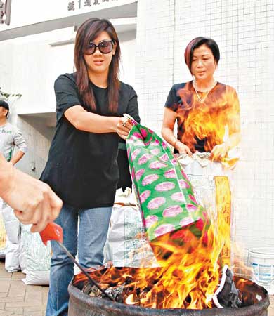 據臺灣媒體報道,鄭欣宜昨天下午在家門口旁焚燒仿LV和Gucci花色的手提袋和行李箱等紙扎祭品,更有肥肥生前最愛吃的鮑魚與山珍海味,好友燒給肥肥的東西數量接近100份,其中還包括美金紙錢,當作她身后消遣娛樂的麻將賭資,可見她生前人緣超好。