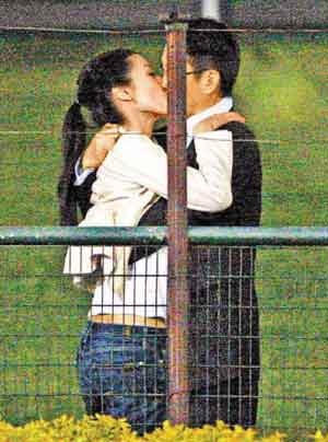 許晉亨與李嘉欣在馬場邊散步邊熱吻。