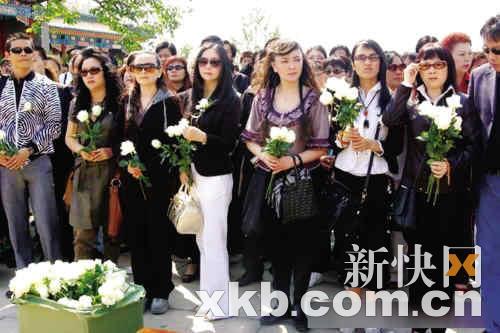 紀念活動開始時,幾百名陳曉旭的影迷帶著白花,圍繞在陳曉旭的水晶雕像周圍。而現(xiàn)場還專門設立了兩個祭壇,其中一個是為5月12日四川地震遇難者專門設置的祭壇。因為陳曉旭生前篤信佛教,還專門為她請來了9位高僧進行了簡短的超度儀式。