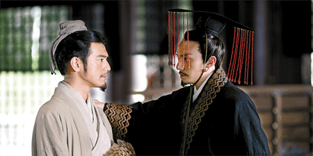 張震:那次是開玩笑啦,不過演“王族”的確蠻爽的(笑)。我記得第一天拍孫權上朝的戲,諸葛亮要說服我讓孫劉結盟,到了現場我感覺挺震撼的———那是很大很大的宮殿,兩邊立著文武百官。我穿好衣服,趕緊跑著坐上“王位”,我想,得趕快習慣一下,因為這個角色天天都是這樣的。上去之后,我一開口,所有人都安靜了。