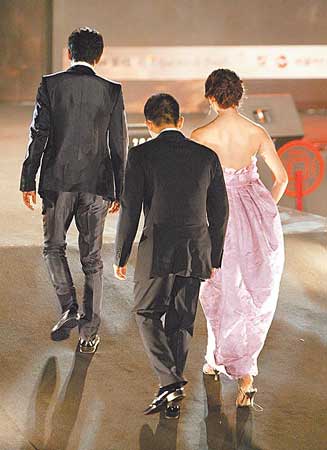 中新網7月9日電 電影《赤壁》昨晚在臺北新店碧潭斥資千萬元(新臺幣 下同)舉行戶外首映禮,吸引約3千名民眾圍觀,3名演員金城武、林志玲、張震帶著作品回到臺灣心情很high,一向惜字如金的金城武致詞時特別以“鄉親父老”打動觀眾,林志玲身著夏姿訂制粉紅色禮服優雅動人,但因為水上星光大道剛下過雨路滑,她只穿上1吋半的高跟鞋,當她走上坡度約45度的紅地毯時,還出現使不上力的狀況,只好用手拖住身后的梁朝偉才順利爬上斜坡。