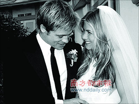 2000年7月29日,皮特和前妻珍妮佛·安妮斯頓的婚禮卻是相當(dāng)壯觀。這場在加州馬里布海灘舉行的婚禮,共耗資百萬美元,宴請兩百名賓客,成為當(dāng)年的頭號婚禮。這場婚禮相當(dāng)出彩,花費(fèi)了7.5萬美元用于購置鮮花,同時還用了2萬美元買了數(shù)量龐大的煙花。許多好萊塢巨星蒞臨現(xiàn)場。