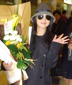 周迅昨日抵達桃園機場,準備盛裝出席晚上的《畫皮》首映。