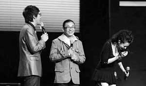 賀歲大片《非誠(chéng)勿擾》前晚在杭州舉行首映禮,導(dǎo)演馮小剛大展群眾基礎(chǔ),除了片中三位主角葛優(yōu)、舒淇、徐若瑄出席之外,其他“有關(guān)無關(guān)”的明星也有一大堆到場(chǎng),堪稱華誼藝人的一次集結(jié)。王寶強(qiáng)、胡可、馮遠(yuǎn)征、張涵予、尚雯婕、羽泉、楊坤等均到場(chǎng)獻(xiàn)藝。難怪前天馮小剛欣慰地說:“我從來不擔(dān)心觀眾,觀眾一直在跟我走!