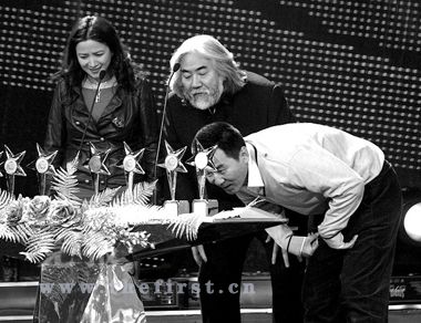頒獎現場還出現了許多花絮。在陳建斌準備領取 “中國劇風尚懷舊英雄劇創新角色”時,擺在頒獎嘉賓張紀中和何晴面前的卻有一排獎杯,“我先給你找找啊,別給錯了”,張紀中只得挨個尋找,無奈現場的燈光偏暗,張紀中拿起其中一個問何晴“是這個嗎?”何晴看了半天,搖了搖頭,無奈之下,張紀中招呼等在一旁領獎的陳建斌自己來找獎杯!斑有這樣的呢,領獎嘉賓自己給自己找獎杯!边B主持人李斌都看不過去了。想必這個獎對陳建斌來說可是“來之不易”。記者 張碩 趙風果 攝
