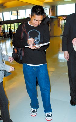 中新網(wǎng)1月16日電 據(jù)臺(tái)灣《中國時(shí)報(bào)》報(bào)道,梁朝偉結(jié)束《赤壁:決戰(zhàn)天下》臺(tái)灣宣傳行程,15日與金城武分別搭機(jī)離臺(tái)。梁朝偉在機(jī)場親切為影迷簽名。