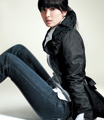 韓國女演員宋慧喬近日為某牛仔褲品牌擔任代言,拍攝了一組廣告照。宋慧喬精致的五官與充滿著女性魅力的身材很適合這身裝扮。