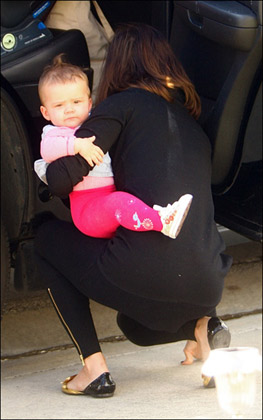 成為了媽媽的杰西卡·阿爾芭已經恢復了窈窕的身材,一身黑色,但是明黃色的書包成為了全身的亮點,星范十足。而懷抱中的閨女則是好像深思者這樣,在想問題。
