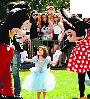 中新網2月18日電 湯姆·克魯斯(TomCruise)結束新片宣傳,隨即與家人共享天倫。他和愛妻凱蒂·赫爾姆斯上周末情人節帶女兒蘇瑞到佛羅里達州的迪斯尼樂園玩。蘇瑞扮成灰姑娘,阿湯哥拿著相機追著她拍,比狗仔還敬業。