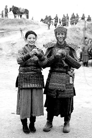 昨日,記者來到河北易縣《花木蘭》的拍攝現場,目睹了趙薇、陳坤的兩場武戲。拍攝雖然辛苦,趙薇卻已經學會了單手騎馬。為了讓花木蘭扮相更像男人,劇組還專門為她買來了束胸腰帶,但她并不會故意學男聲,而是要顯得自然。拍攝砍殺敵人的鏡頭時,趙薇被濺得滿臉是血。趙薇告訴記者,“這些血都是用川貝枇杷膏制作的,看著很嚇人,其實還可以舔,甜甜的。”