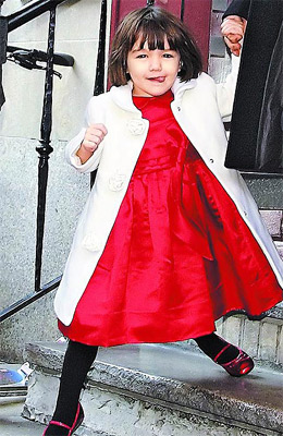 蘇瑞常穿一雙金色娃娃鞋,這雙鞋出自法國知名童裝品牌“Bonpoint”,要價230美元。但凱蒂自己卻不求奢華,75美元的黑白格子風(fēng)衣她穿得很開心,阿湯哥的舊牛仔褲更是連穿好幾周,意外帶動流行。