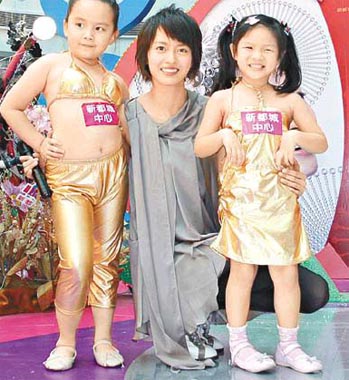 中新網12月17日電 梁詠琪(GiGi)本周五將在亞洲博覽館開唱,昨天她出席在將軍澳舉行的“梁詠琪才女好友會”活動,期間有多名歌迷演繹梁詠琪歌曲比賽,更有兩位小妹妹穿金色比基尼及露背裝現身,逗得梁詠琪笑個不停。