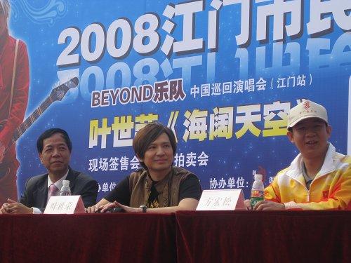 近日,香港BEYOND樂隊前鼓手葉世榮做客僑鄉江門,在金匯城市廣場舉行演唱會入場券簽售會暨慈善拍賣會,他將于12月27日晚8時在金匯城市廣場舉行BEYOND—葉世榮“海闊天空”中國巡回演唱會(江門站)。