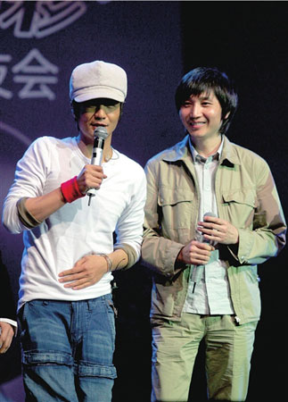 演出一開始,一向寡言的張亞東客串了一把主持人,直接把嘉賓樸樹請上臺(圖),講述他們合作《世界盡頭》的小故事。張亞東說非常感謝樸樹,因為他作曲的曲調很低,樸樹基本上是在壓著嗓子唱,并且樸樹為《世界盡頭》寫的詞打動了他,“我感覺到做音樂不再那么孤獨了”。