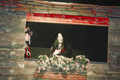 原版的《天地吉祥》,主要是由一個一個的舞臺連綴在一起,但楊二認為這太平常了,她大刀闊斧地用一條“情”的線索把全劇串連在一起了——紅色的帳篷里,藏族男女的舞姿剪影像翩翩蝴蝶一樣纏綿在一起;羌族高高的碉樓里,一匹彩色的羌繡把一男一女、樓上樓下地聯系在一起,最后為了愛情雙雙奔走;最值得一提的是,摩梭人的“走婚”,被楊二用百分百真實還原了——楊柳掩映下的木屋外,手電筒和火把的光線熱鬧而散亂,年輕男子帶著激動、狂喜走進了美麗女郎的家,燈光倏忽全滅,黑暗中只能聽見一男一女的竊竊私語,女聲正是楊二用摩梭人的話語配的音;天亮之后,男子瀟灑地走了,癡情的女子卻在窗前久久凝望不休,在這里,楊二將親自扮演“走婚”的女子并演唱一首原創的《花樓戀歌》:“阿哥喲,火塘是這樣的溫暖,我是這樣的溫柔,阿哥喲,你離開阿妹走他鄉,只有憂愁……”哀傷纏綿的情歌,配上楊二那清脆富有穿透力的歌喉,別有韻味,楊二驕傲地說:“我相信我可以把觀眾唱哭!”